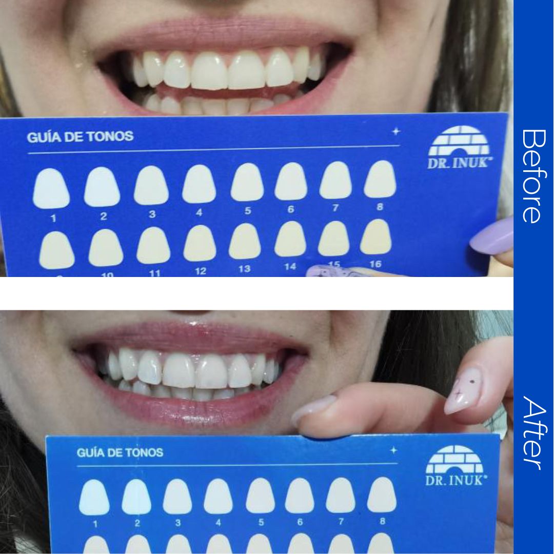 Dr. INUK® te ofrece una experiencia de blanqueamiento eficaz gracias a su fórmula única con PAP y al adhesivo odontológico de 3ª generación.